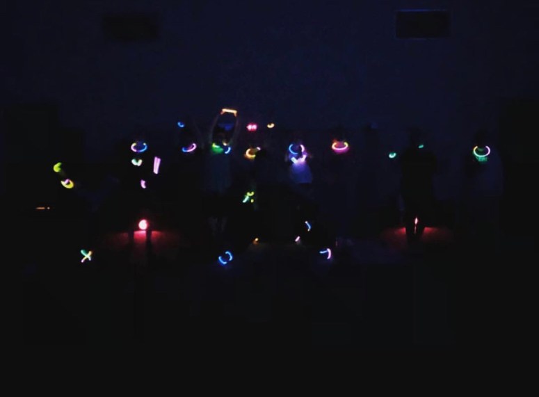 I used the same Halloween flow and themed poses that I developed for my secular beginners and kids classes and developed a playlist of mostly contemporary Christian songs to flow to. I ordered about 300 glow sticks off of Amazon and grabbed 2 big bags of Halloween candy for all 3 classes and away we went!